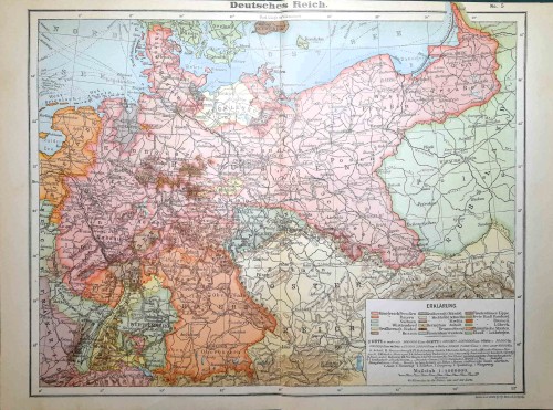 Piccola carta geografica antica del distretto della Franconia Inferiore (Unterfranken) con capoluogo Wurzburg in Germania. |