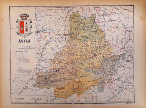 Carta geografica antica della provincia di Avila, nella comunità autonoma di Castiglia e León, nella Spagna centrale. |