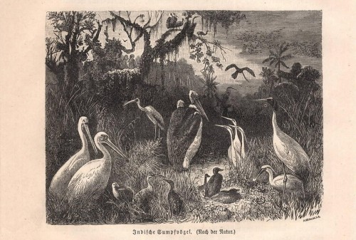 Bella stampa antica in stile giapponese tratta da un disegno di Sesson con un gruppo di oche in un canneto. |