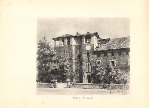 Stampa antica con veduta di Aicurzio, oggi in provincia di Monza e Brianza, con l'edificio della "Commenda" dei cavalieri di Malta. |