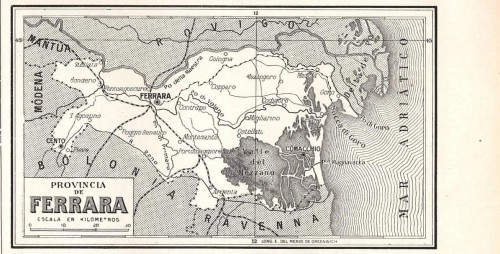 Stampa antica con veduta di Porto Garibaldi (Magnavaca nel dialetto locale), frazione del comune di Comacchio in provincia di Ferrara. Il paese di Porto Garibaldi è nato sul lato nord del porto canale, ed è l'insediamento più antico di una serie di sette località balneari, tutte comprese all'interno del comune di Comacchio, dette Lidi di Comacchio. Il nome originario dell'abitato era Porto di Magnavacca, poi il paese fu intitolato a Giuseppe Garibaldi per ricordare lo sbarco in zona dell'eroe del Risorgimento nel 1849. |