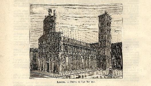 Stampa antica con scorcio di Viareggio, in provincia di Lucca, con l'antica torre della Principessa Matilde e numerose imbarcazioni a remi e a vela attraccate ai moli. |