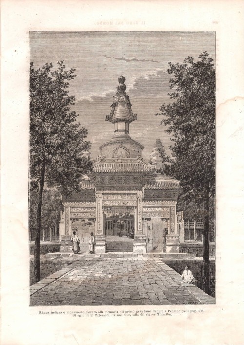 Stampa antica con uno scorcio della Grande Muraglia a Hia-tao in Cina. |
