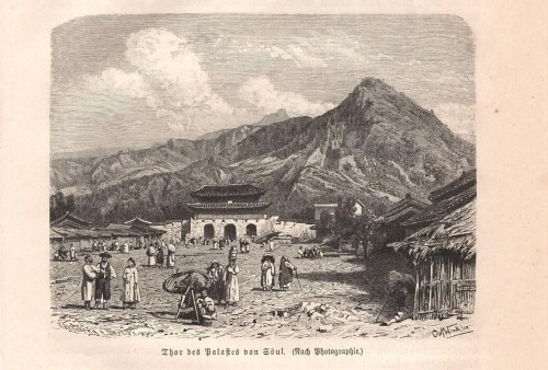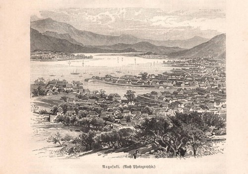 Stampa antica con veduta del Nikko Tosho-gu, santuario shintoista dedicato a Tokugawa Leyasu. Il santuario è nella città di Nikko nella prefettura di Tochigi nel nord della regione di Kanto sull'isola di Honshu ed è un Patrimonio dell'umanità dell'UNESCO. |