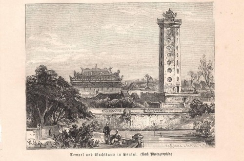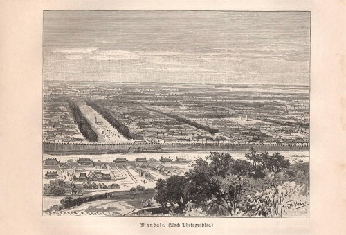 Piccola stampa antica con veduta panoramica del Monte Ida (in turco: Kazdagi), un monte nei pressi dell'antica Troia, nell'attuale provincia di Balikesir, nel nordovest della Turchia. È qui che Paride visse da giovanetto tra i pastori, ed è da qui che Zeus avrebbe rapito Ganimede per farne il suo amante. La cima più alta è il Gargaro, menzionato anche nell'Iliade. |