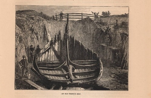 Stampa antica con veduta del Karl Johans Gate, il viale di Oslo, capitale della Norvegia, che conduce al Palazzo Reale (Det kongelige slott) che si vede sullo sfondo. |
