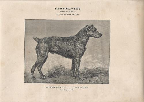 Stampa antica con un cane di razza English Cocker Spaniel bianco e nero. |