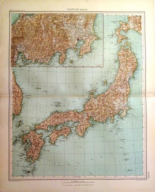 Carta geografica antica dell' Asia poco dopo la prima guerra mondiale, con evidenziate con colori diversi le colonie di Italia (Tientsin in Cina), Gran Bretagna (con tutta l' India), Francia, Portogallo, Russia, Olanda, Stati Uniti e Giappone. |
