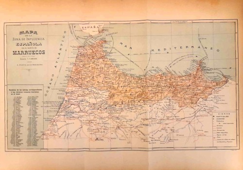 DESCRIPTION Carta geografica antica del Protettorato Spagnolo del Marocco, la porzione del Marocco amministrata dalla Spagna dal 1912 al 1956.