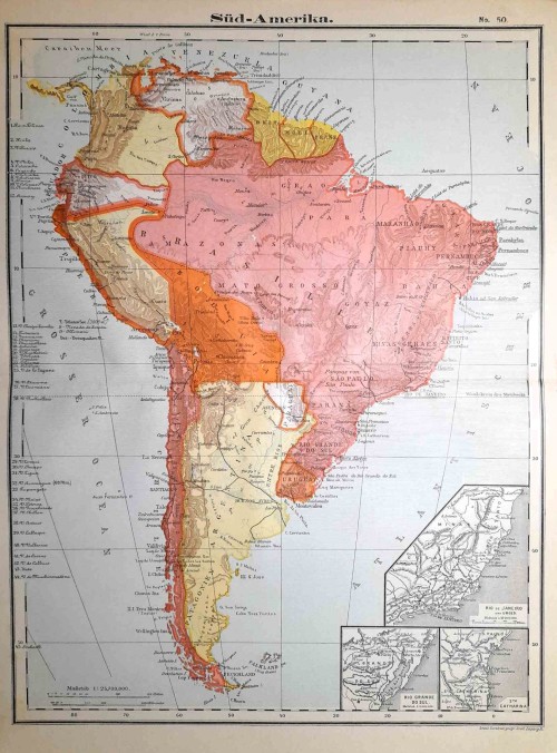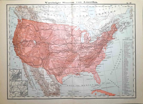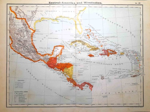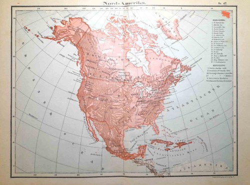 Stampa antica con la Carta del Canale di Nicaragua, un progetto di percorso navigabile tra il Mar dei Caraibi (oceano Atlantico) e l'oceano Pacifico, attraverso il paese centramericano del Nicaragua. Il canale avrebbe dovuto risalire un corso fluviale sino al lago Nicaragua, e negli ultimi 10 km tagliare l'istmo di Rivas con uno scavo a partenza da Brito. Gli Stati Uniti, che coltivarono il progetto all'inizio del XX secolo, vi rinunciarono dopo l'acquisto dei diritti francesi sul canale di Panama (1904). |