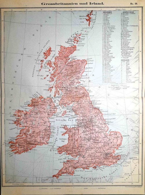 DESCRIPTION Carta geografica antica della Gran Bretagna e Irlanda antecedente la prima guerra mondiale.