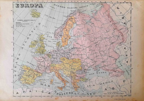 DESCRIPTION Carta geografica antica fisica dell' Europa.