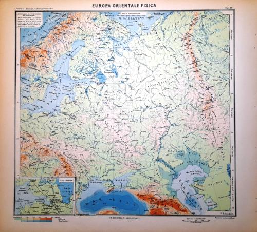 Bella carta geografica antica dell' Europa prima della seconda guerra mondiale. Il territorio dell' Italia è nel momento di massima espansione, con l'Istria e le isole adiacenti, Lagosta, Rodi e le altre isole dell' Egeo, la Libia. Di li a poco la guerra stravolgerà la geografia politica del continente. |
