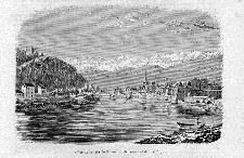 Stampa antica con veduta delle montagne nelle Prealpi della Chartreuse, parte delle Prealpi di Savoia in Francia nella regione Rodano-Alpi. Numerose figure animano la scena, fra le quali un disegnatore all'opera, quasi certamente una citazione dell'autore, che non ha resistito alla tentazione di ritrarre se stesso. |