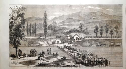 Stampa antica con un momento della spedizione dei Mille di Garibaldi nel 1860. Gli avventori del Caffè di Europa a Napoli portano in trionfo il primo garibaldino entrato nel locale, ancora oggi esistente con il nome di Gran Caffè Napoli 1850 in piazza Principe Umberto. |