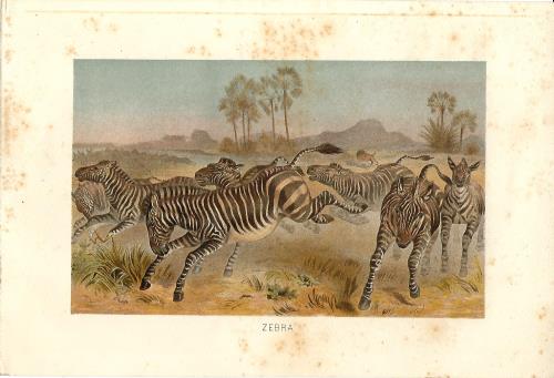 Bella e rara stampa antica con un numeroso insieme di animali quadrupedi, fra i quali l'antilope, l'ocelot, la pantera, l' opossum, lo scimpanzè, la lontra, il pangolin, la puzzola, il procione, il porcospino, il rinoceronte ed altri.