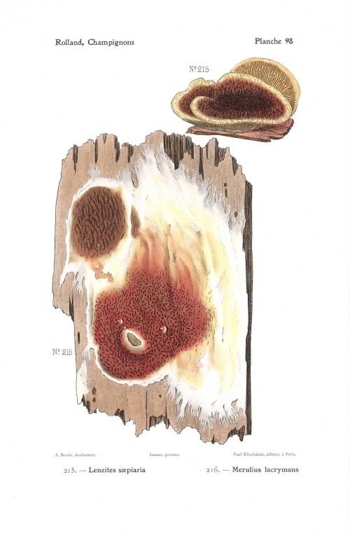 Stampa antica con funghi della specie indicata nel titolo, Lenzites saepiaria Merulius lacrymans.