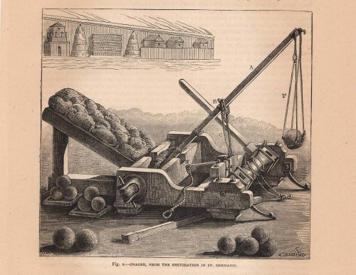 Stampa antica con immagini su entrambi i lati del foglio con numerose armi, elmi e armature di diverse epoche e paesi. |