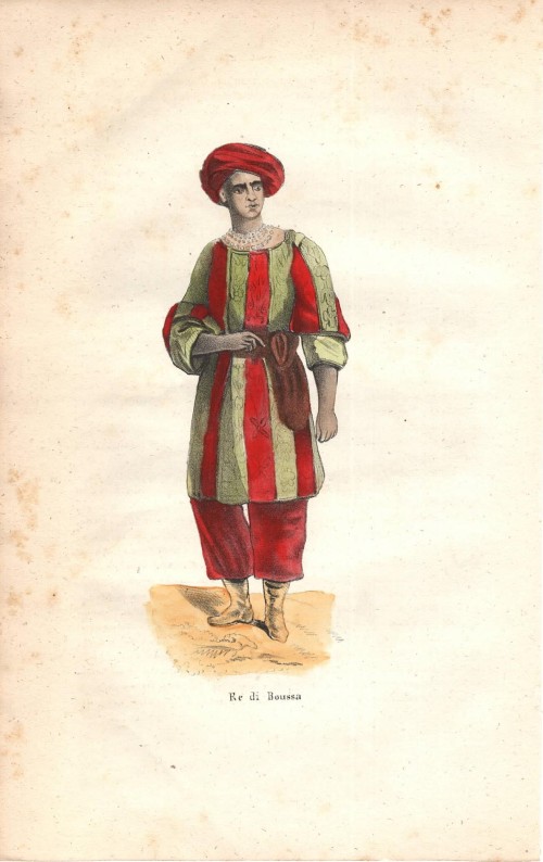 Stampa antica con un giovane indigeno delle isole Vanikoro (chiamate anche isole Vanikolo), un gruppo di isole facenti parte delle Isole di Santa Cruz, a loro volta contenute nell' arcipelago delle Isole Salomone (Solomon Islands), in Oceania. L'isola maggiore è Banie, le altre isole sono Tevai, Manieve, Nomianu e Nanuga. |