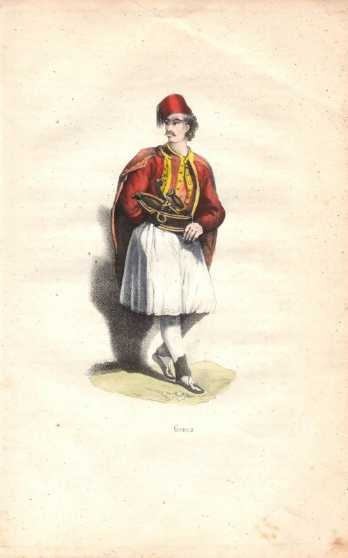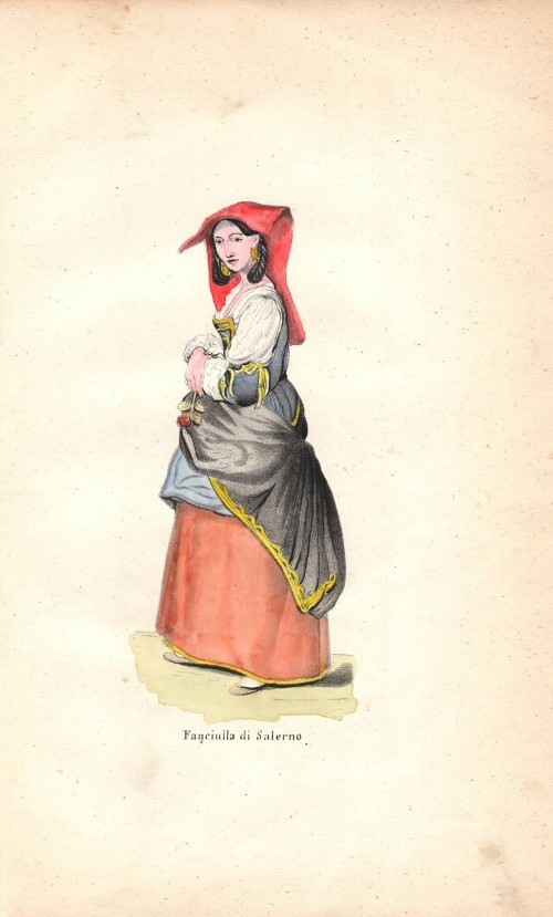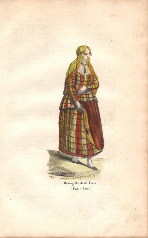 Stampa antica con una donna dei dintorni di Praga (Praha), capitale della Repubblica Ceca, con il suo abito tradizionale. |