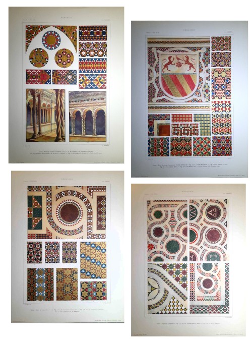 TITLE STILE ROMANICO - Serie di 4 stampe antiche con MOSAICI COSMATESCHI a ROMA