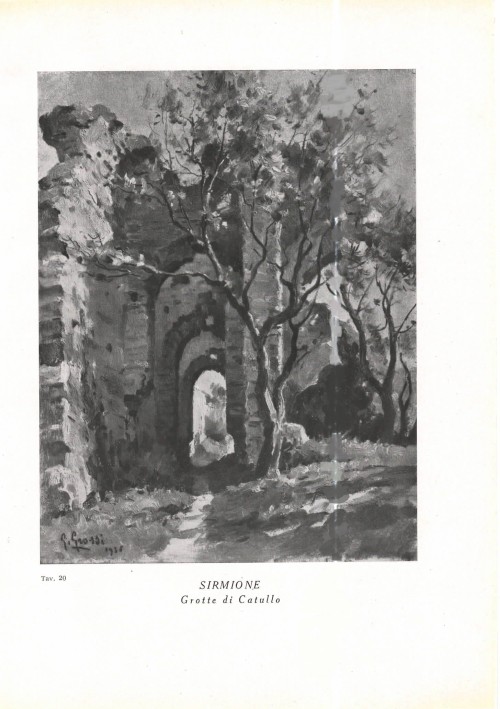 Stampa antica con veduta delle Grotte di Catullo a Sirmione sul lago di Garda in provincia di Brescia.