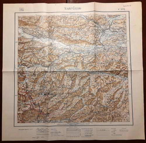 Carta geografica antica del territorio di Tarvisio, località del Friuli-Venezia Giulia in provincia di Udine. La carta comprende il territorio da Bleiberg a nord fino a Plezzo a sud, da Ugovizza a ovest fino a Kranjskagora a est. |