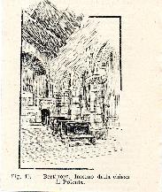 Minuscola stampa antica con veduta dell'interno della Pieve di San Donato in Polenta, nell'omonima frazione del comune di Bertinoro, in provincia di Forlì-Cesena. |