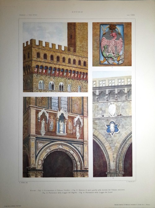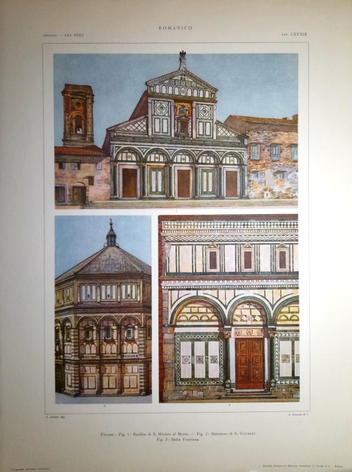 Stampa antica con veduta della Cattedrale di Santa Maria del Fiore, Duomo di Firenze, con il campanile ed il Battistero. |