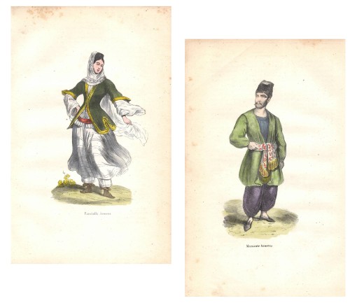 Stampa antica con veduta panoramica di Semiramacerta, oggi Van, città della Turchia orientale, nei pressi lago omonimo, nella regione storica dell' Armenia. |