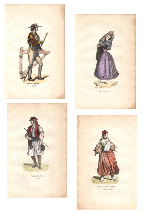Piccadore smontato - Manola Damigella Spagnuola - Abitante della Murcia - Donna dei dintorni di Valladolid - Serie di 4 stampe antiche