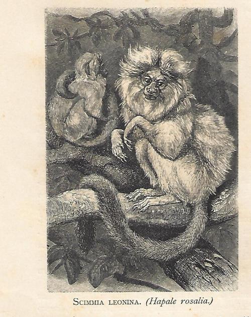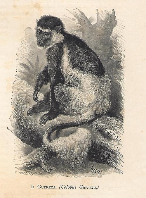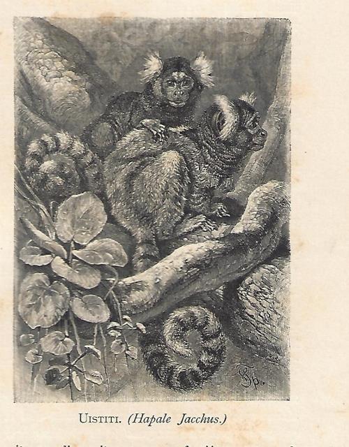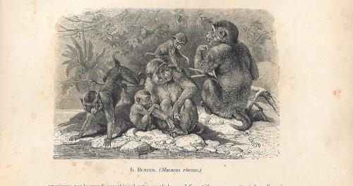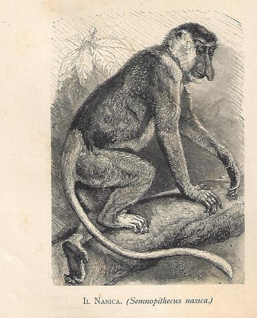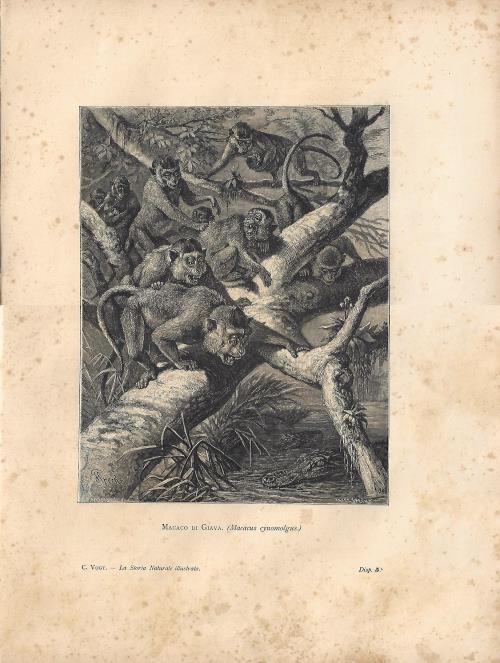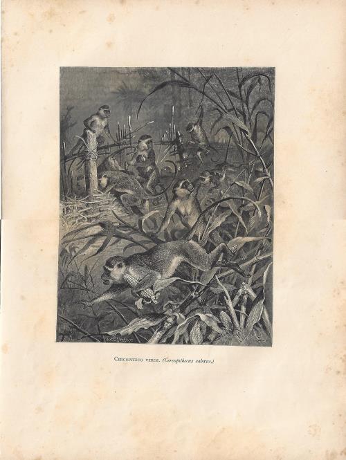 Stampa antica con numerose scimmie cercopiteco gialloverde (oggi Chlorocebus sabaeus). |