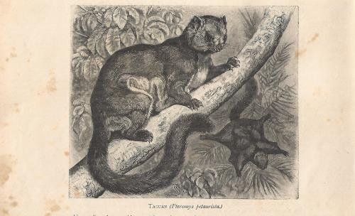 Stampa antica con il tamia striato, chipmunk orientale o chipmunk (Tamias striatus). |