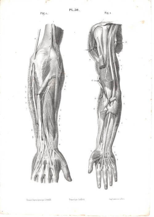 Stampa antica di anatomia del dito, unghia, polpastrello.
